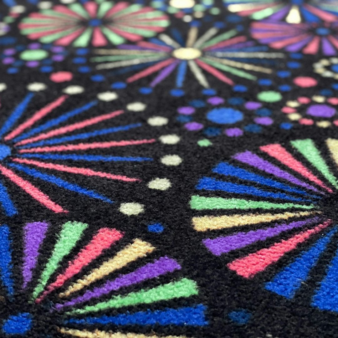 Im Jahr 2025 habe ich begonnen, mich mit der Herstellung von Teppichen im Tufting-Verfahren zu beschäftigen. Für mich ist die Kombination Handarbeit/Maschinenunterstützung sehr interessant. Formen, Farben sind hier kaum Grenzen gesetzt, auch kann hier mit unterschiedlichen Florhöhen experimentiert werden. Demnächst werde ich mich mit dem Thema „Teppichschnitzen“, das heißt: Herausarbeiten von 3D Effekten, beschäftigen. Bin auf das Ergebnis gespannt. Natürlich wird beim handgeführten Tufting jeder Teppich ein Unikat und ist nicht reproduzierbar.