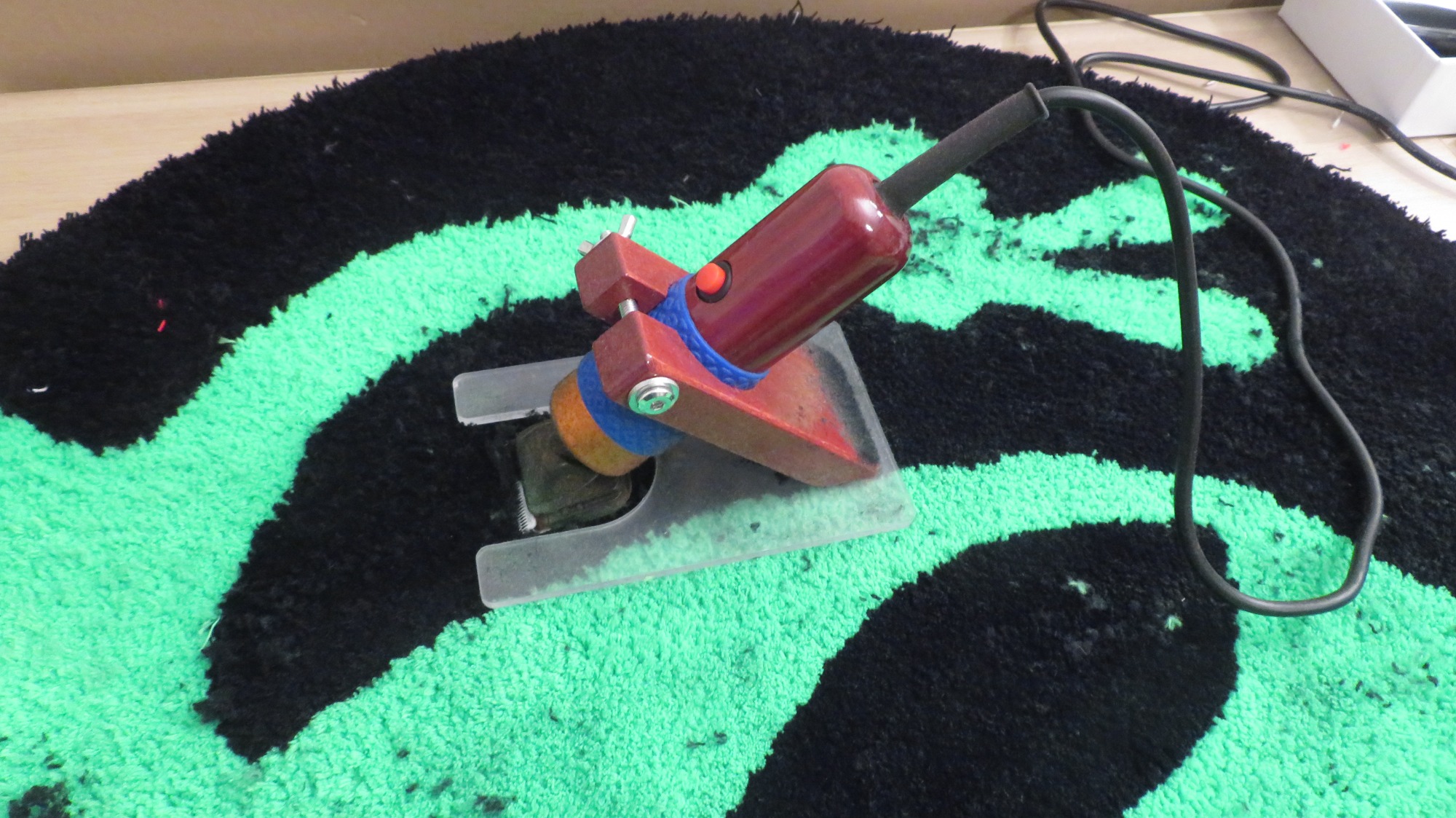 Im Jahr 2025 habe ich begonnen, mich mit der Herstellung von Teppichen im Tufting-Verfahren zu beschäftigen. Für mich ist die Kombination Handarbeit/Maschinenunterstützung sehr interessant. Formen, Farben sind hier kaum Grenzen gesetzt, auch kann hier mit unterschiedlichen Florhöhen experimentiert werden. Demnächst werde ich mich mit dem Thema „Teppichschnitzen“, das heißt: Herausarbeiten von 3D Effekten, beschäftigen. Bin auf das Ergebnis gespannt. Natürlich wird beim handgeführten Tufting jeder Teppich ein Unikat und ist nicht reproduzierbar.